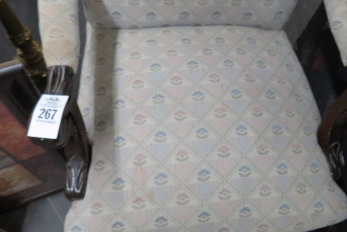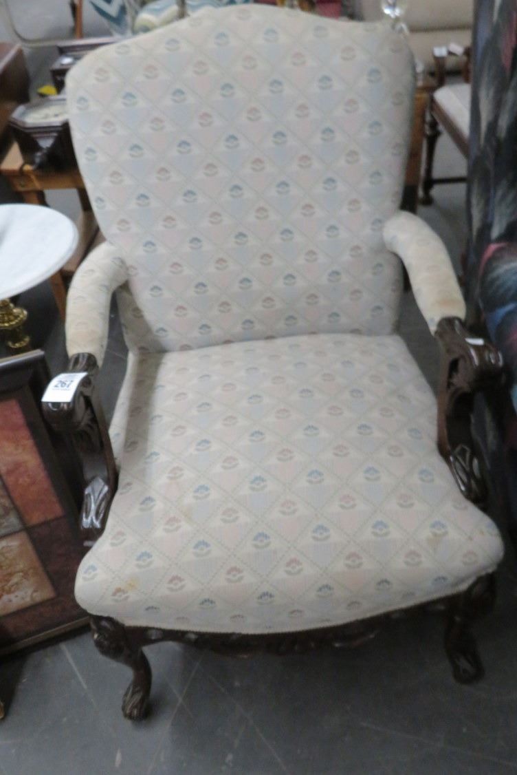 Carved Mahogany Padded Armchair