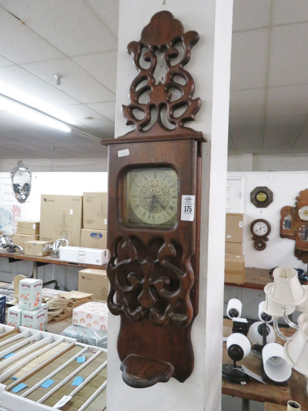 Carved Mahogany Wall Clock w/Shelf