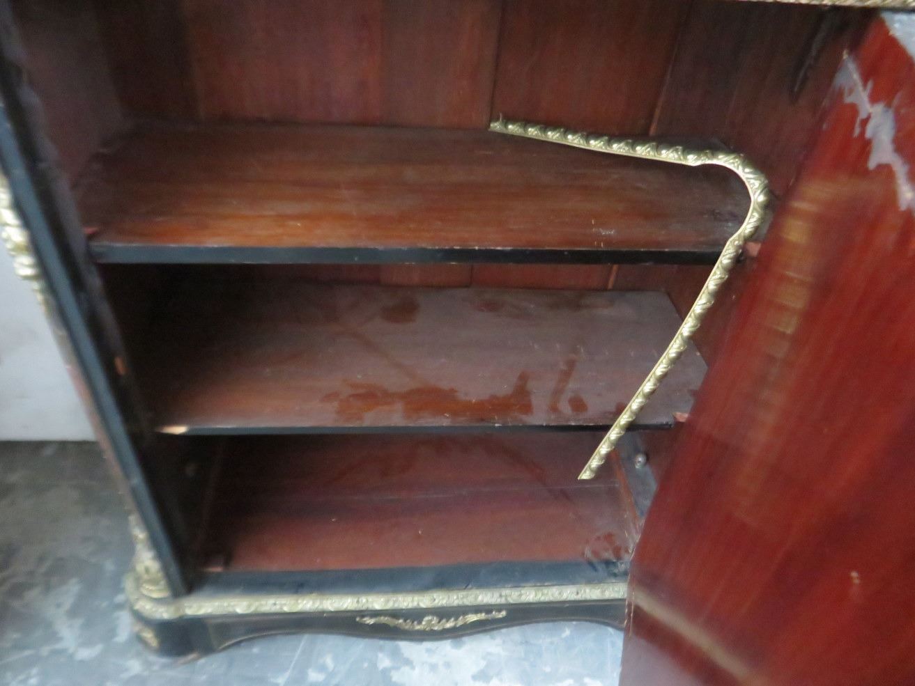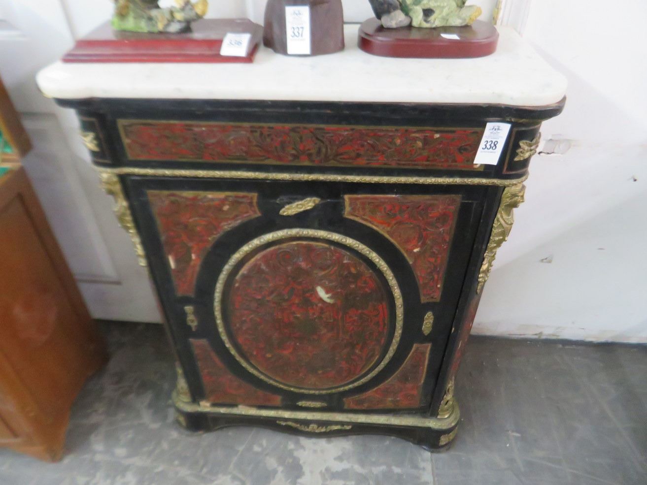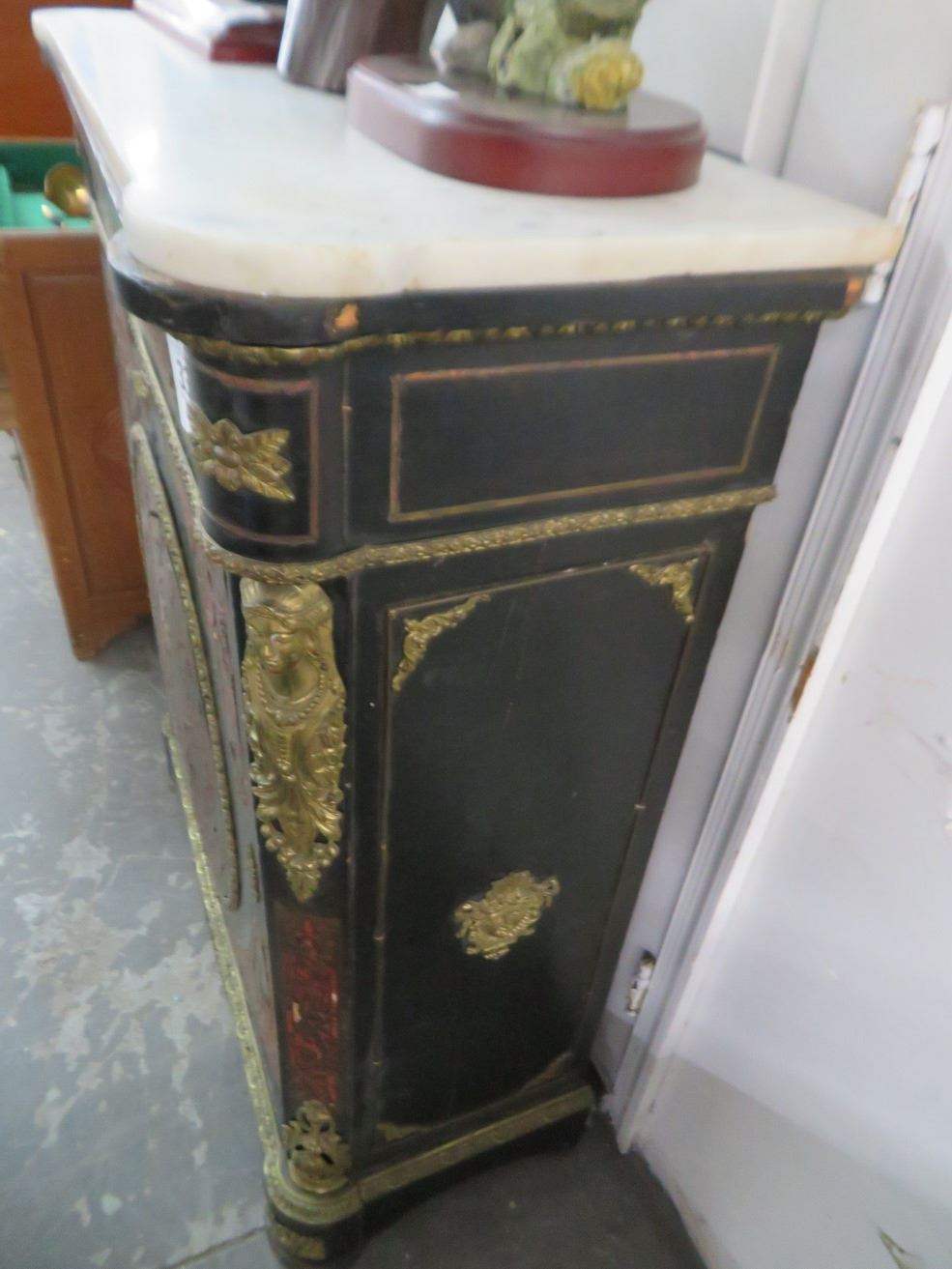 Carved Wood Brass Figural Cabinet w/Marble Top