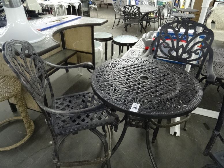 Cast Aluminum Round Top Pub Table w/2 Chairs