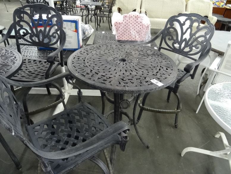 Cast Aluminum Round Top Pub Table w/2 Chairs