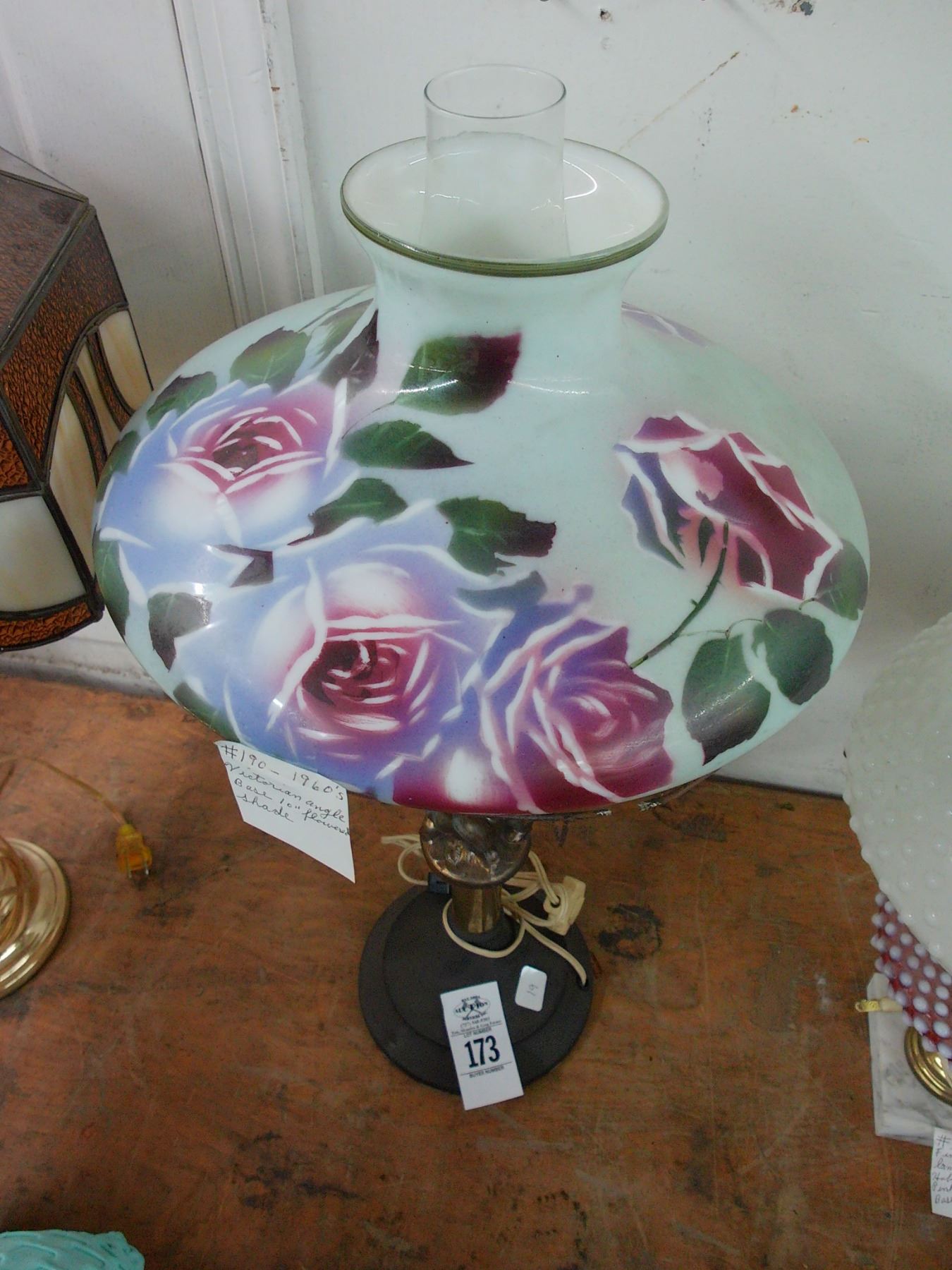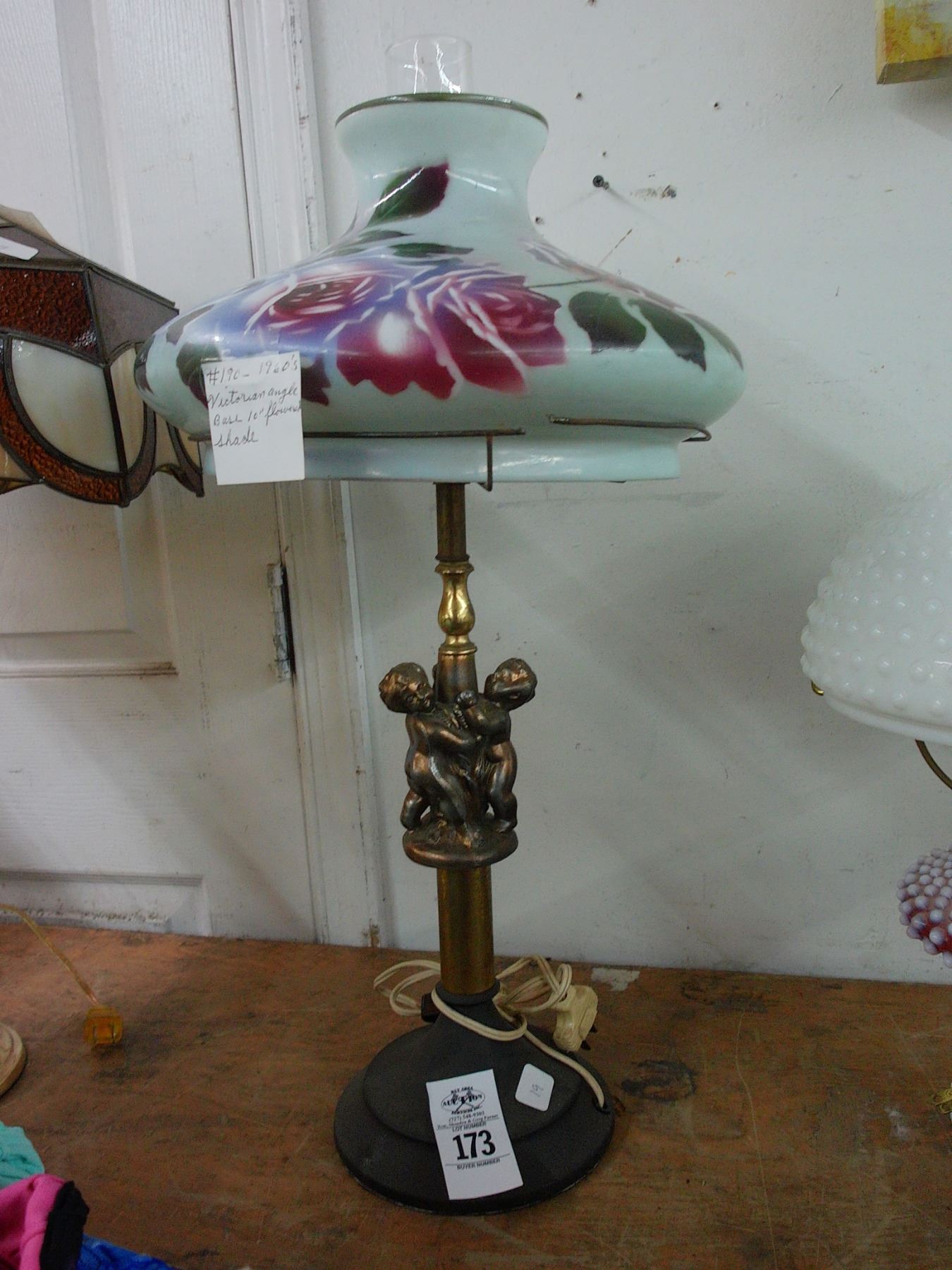 Cast Cherub Base Lamp w/Glass Floral Shade