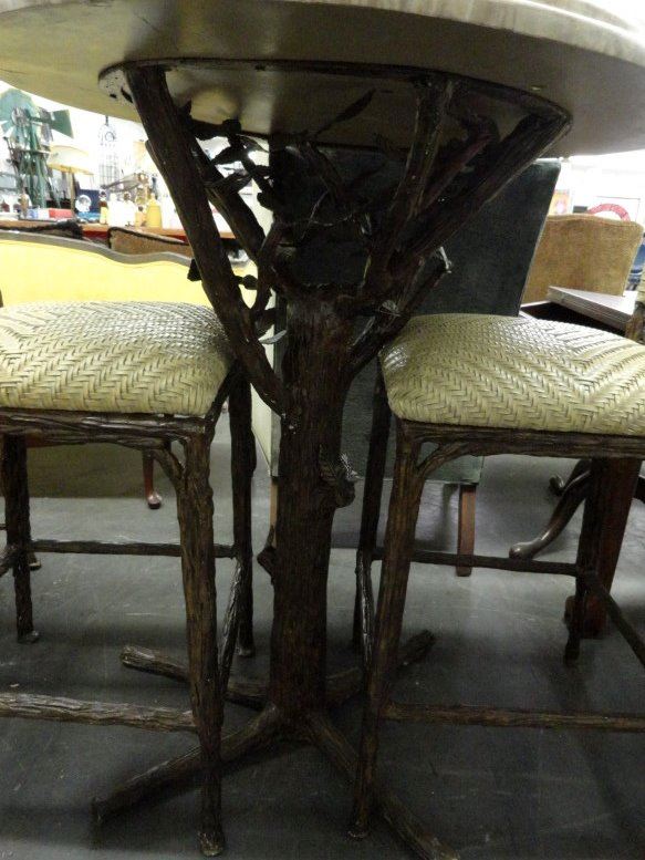 Cast Metal Tree Trunk Pub Table w/2 Stools