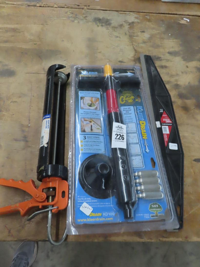 Caulk Gun, Paint Shield, Drain Cleaner