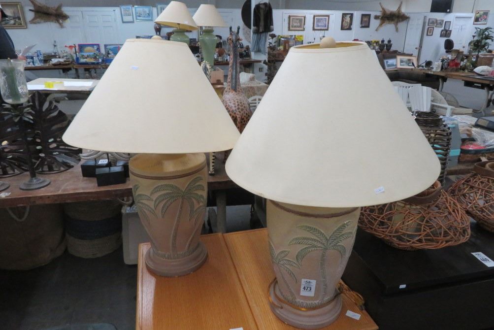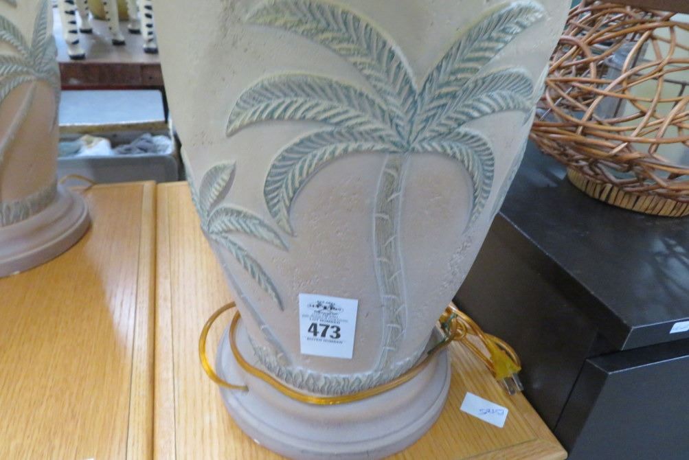 Ceramic Palm Leaf Motif Table Lamps (Pair)