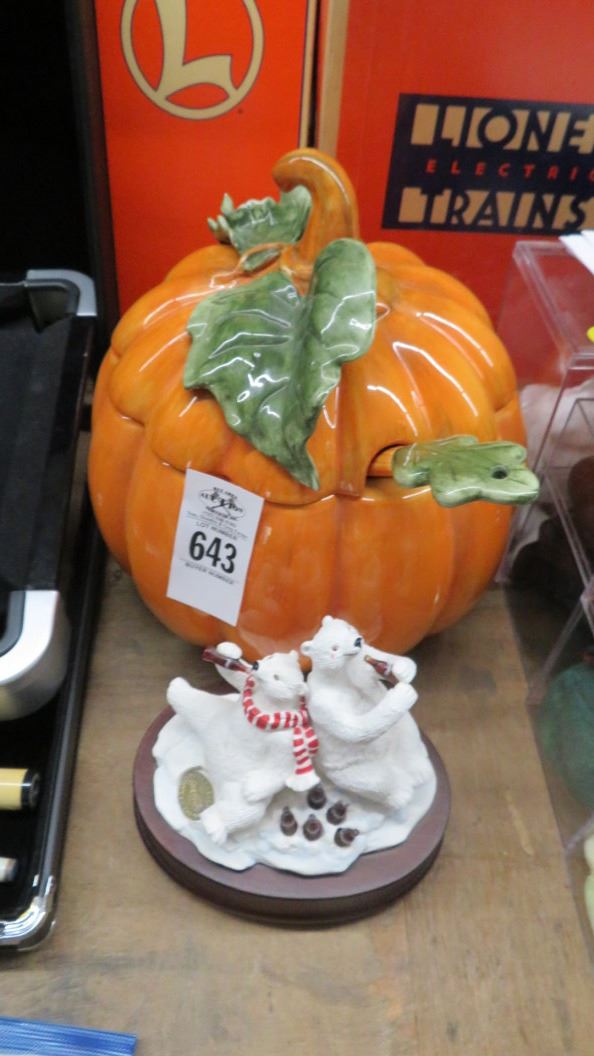 Ceramic Pumpkin Punch Bowl & Coca Cola Bear Figurines