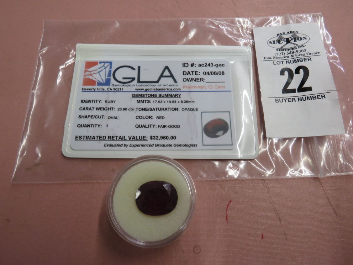 Cert. 20.6 Oval Red Ruby w/Gem Report