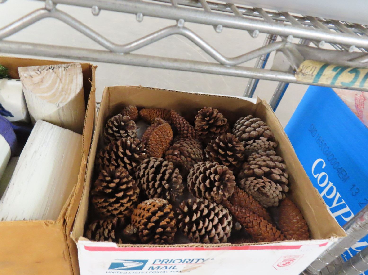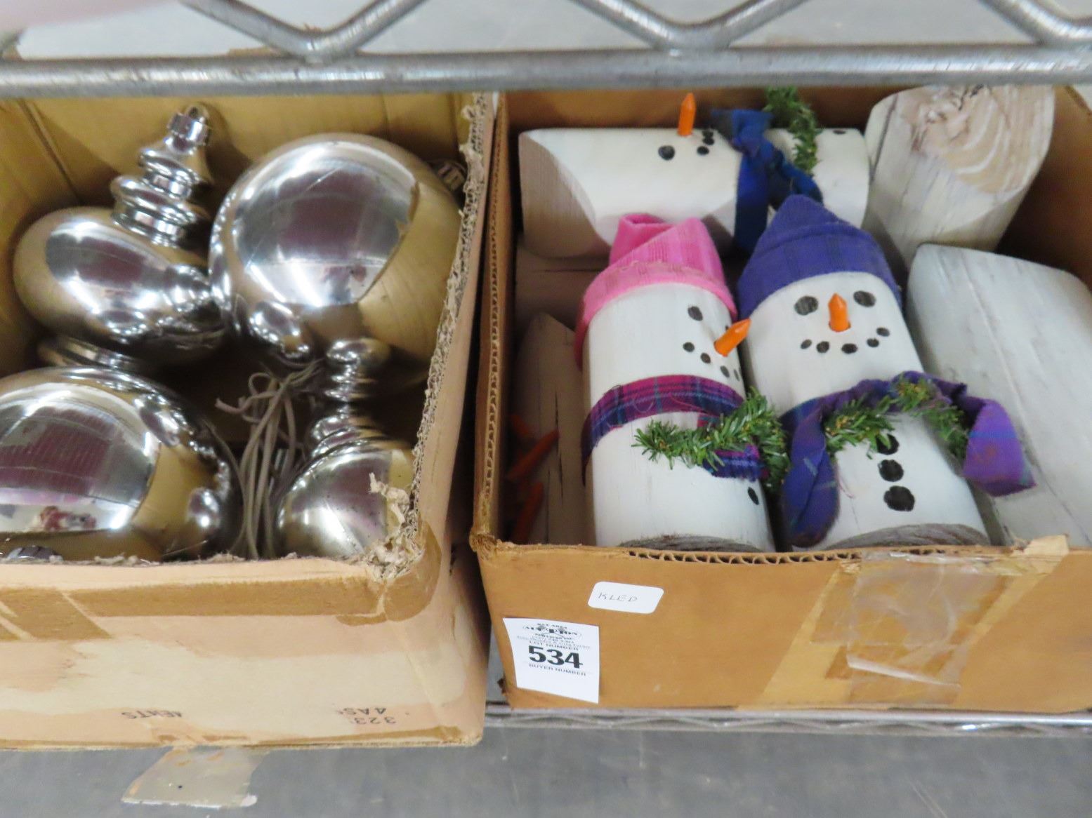Christmas Ornaments, Snowman, Wood Clocks, Pine Cones - Shelf