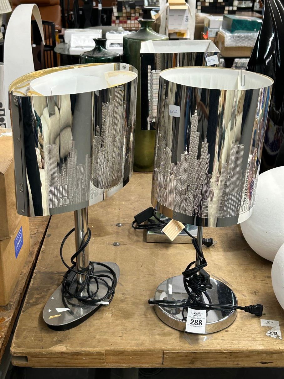 Chrome NYC City Skyline, Decorator Lamps - Set of 3