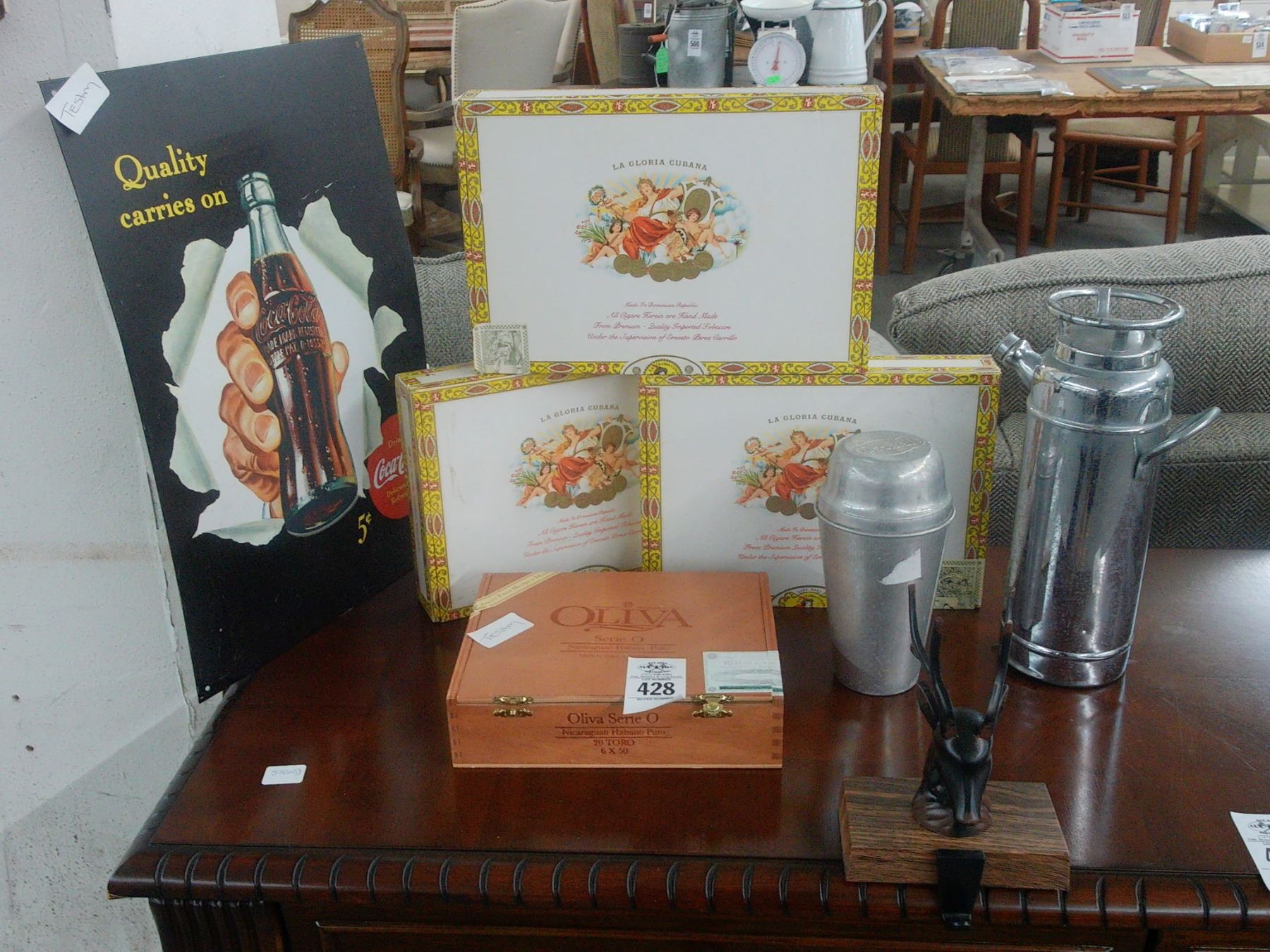 Cigar Boxes, Canisters, Shelf Hanger, Coca Cola Tin