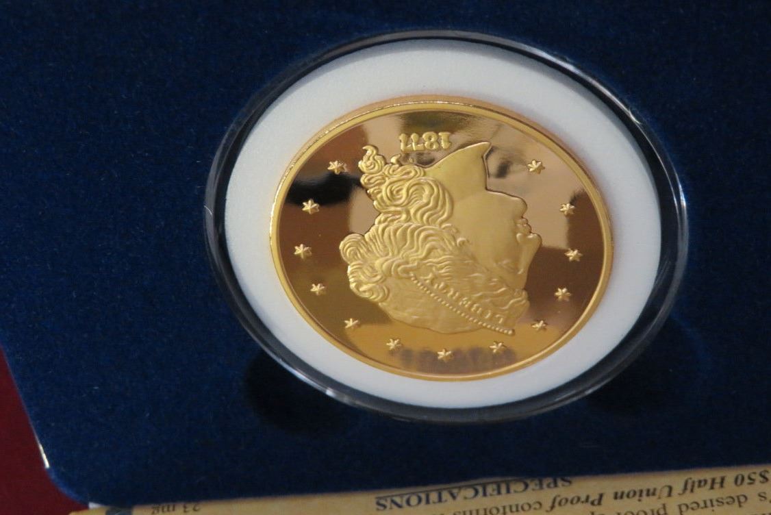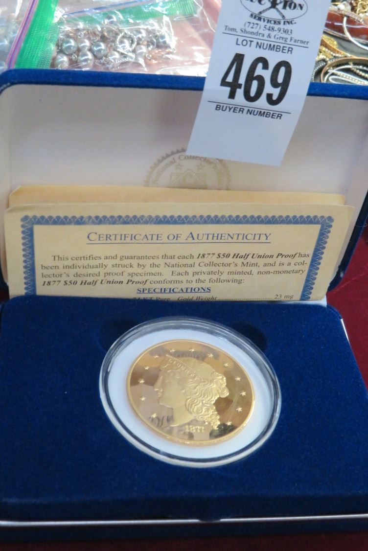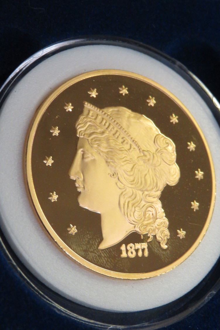 Collectors Large 24K Gold Layered Replica 1877 $50.00 Gold Piece w/COA