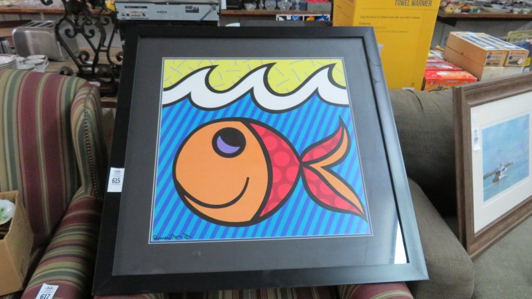 Colorful Fish Wall Art Signed Romero TG - 35" x 35"