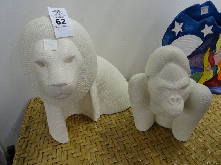 Concrete Carved Lion/Gorilla by Karen Smith Signed and Numbered