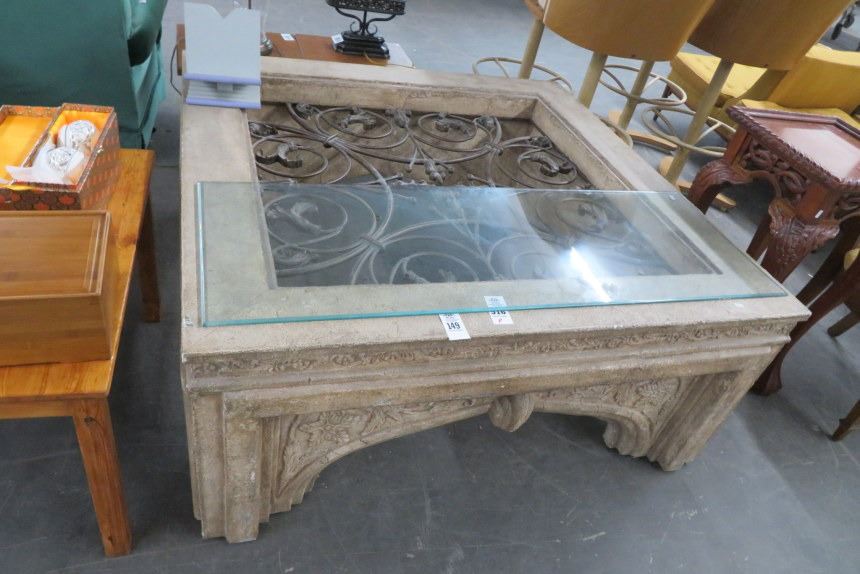 Concrete Coffee Table w/Ornate Metal Inlay (No Glass)