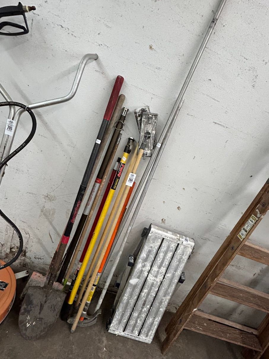 Conduit Bender, Paint Mixer, Shovels, Ext. Poles