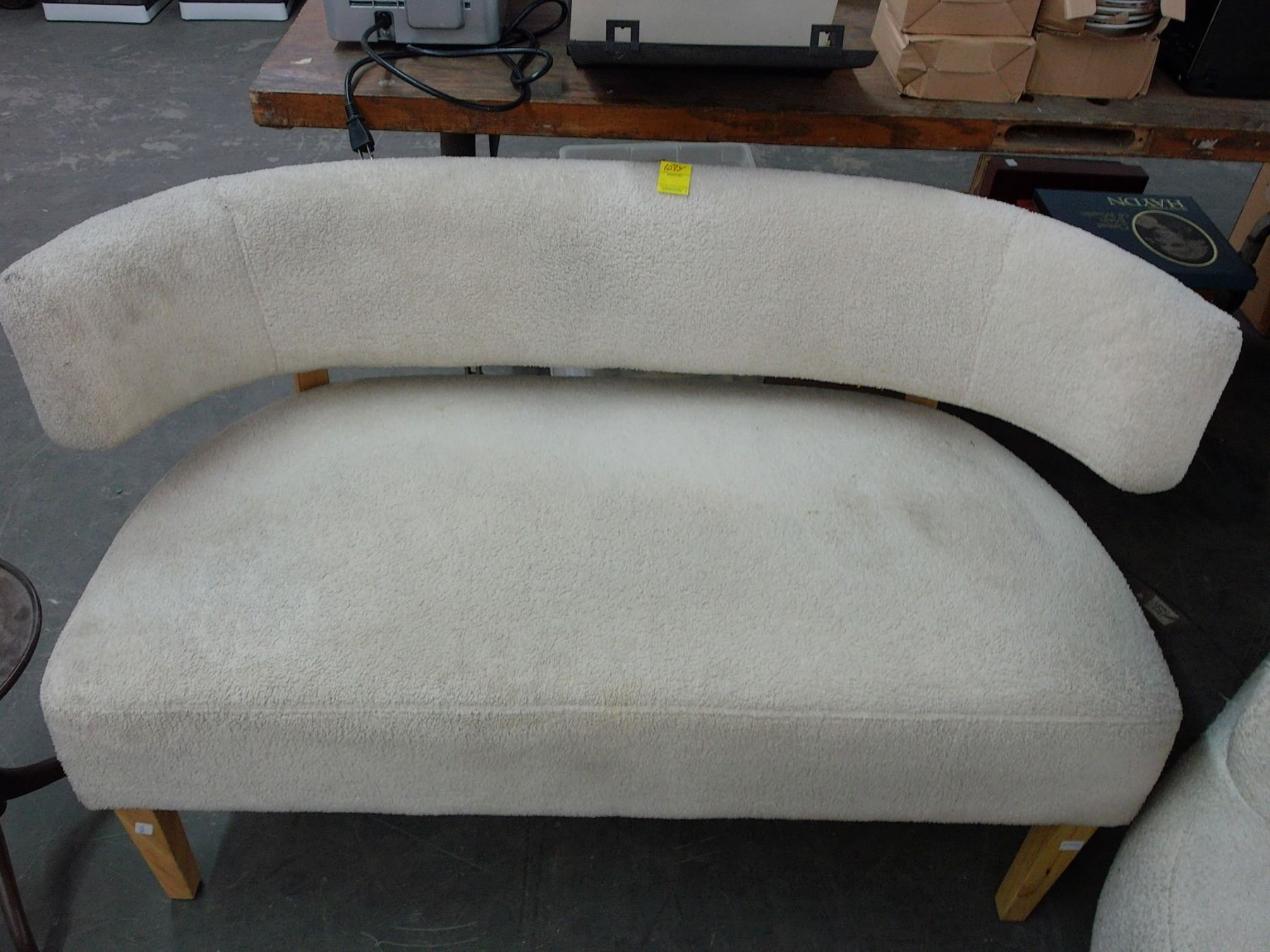 Contemporary Bone Cloth Curved Loveseat