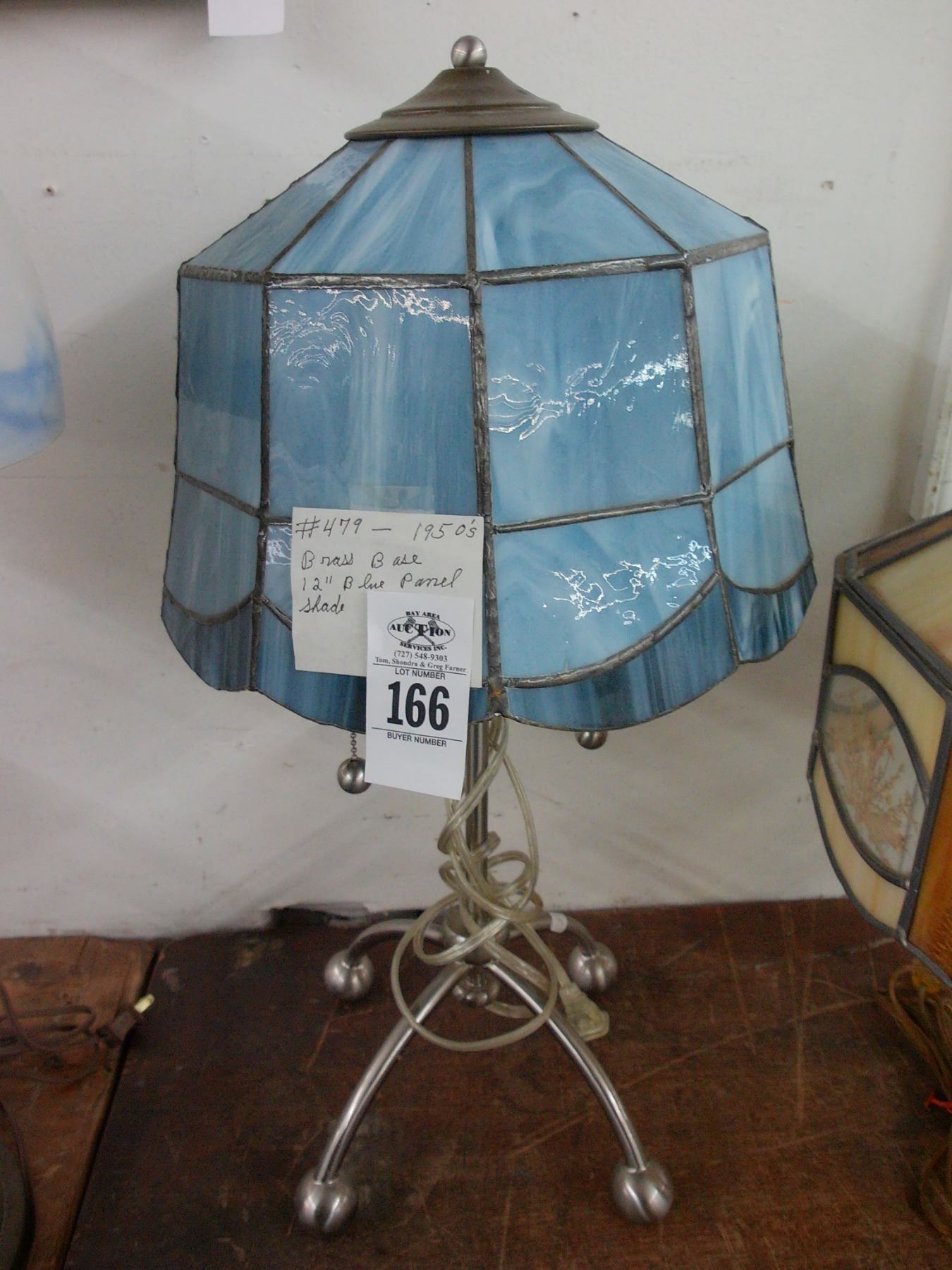 Contemporary Metal Base Lamp w/Blue Glass Panel Shade