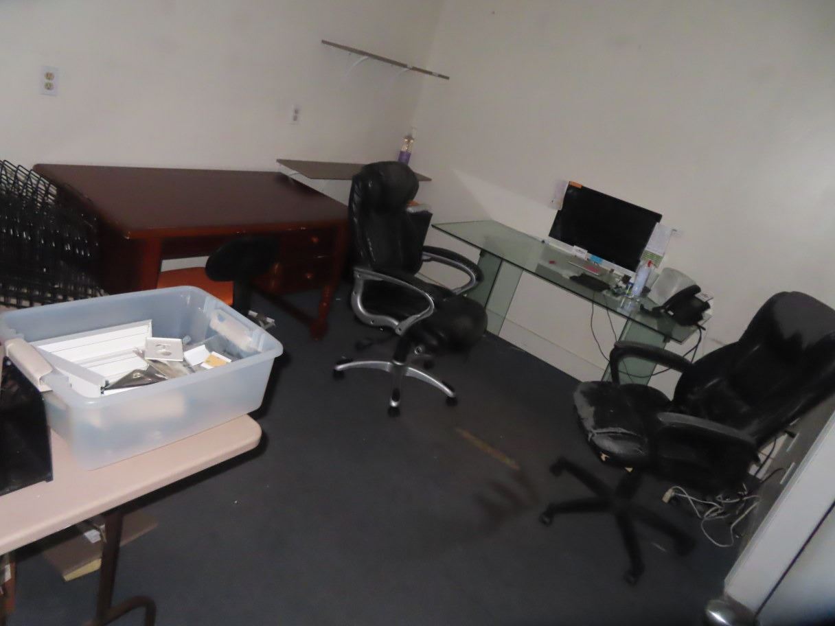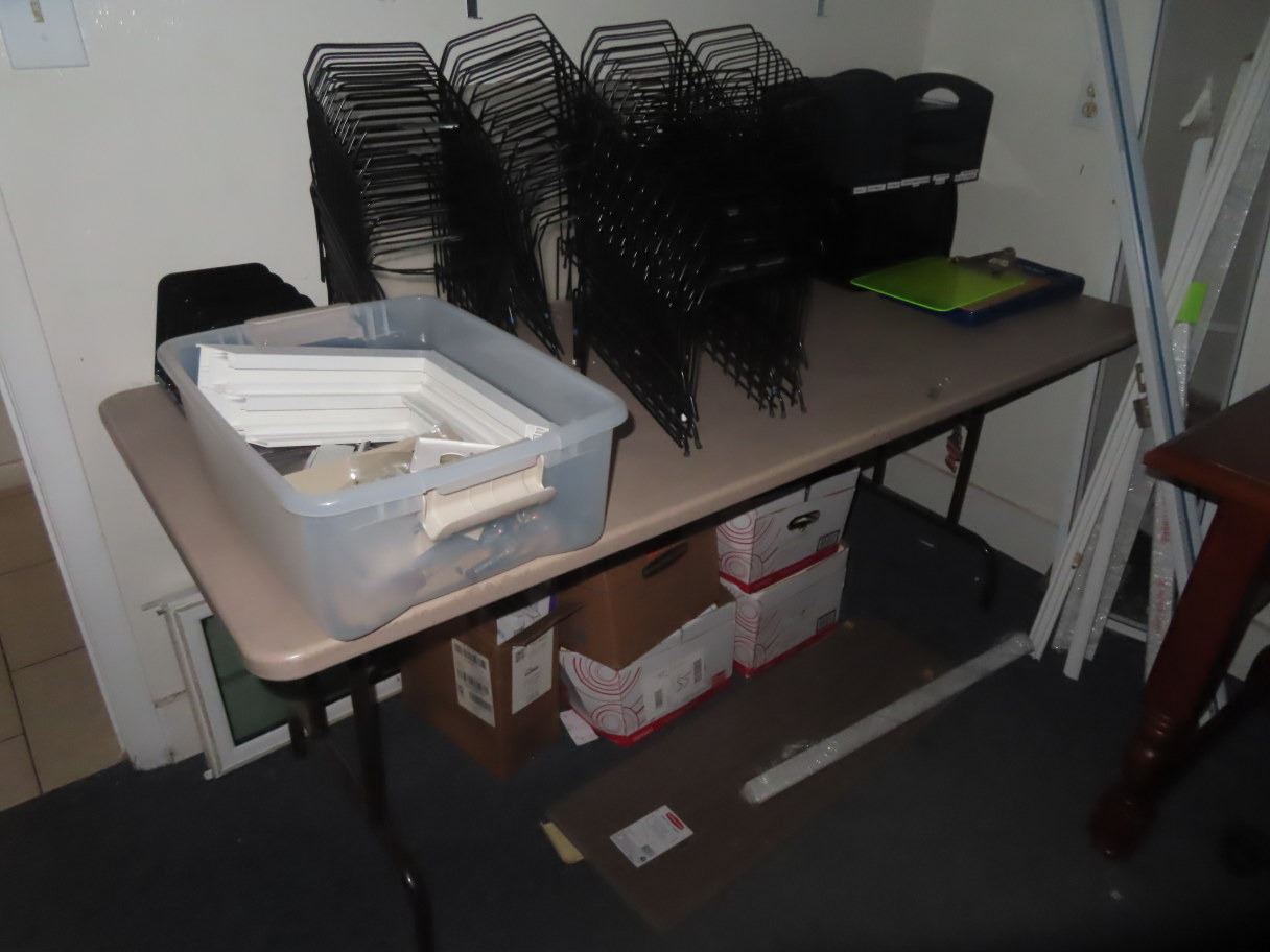 Contents of Office Desk, Banquet Table, 6 File Cabinets & Bookcase