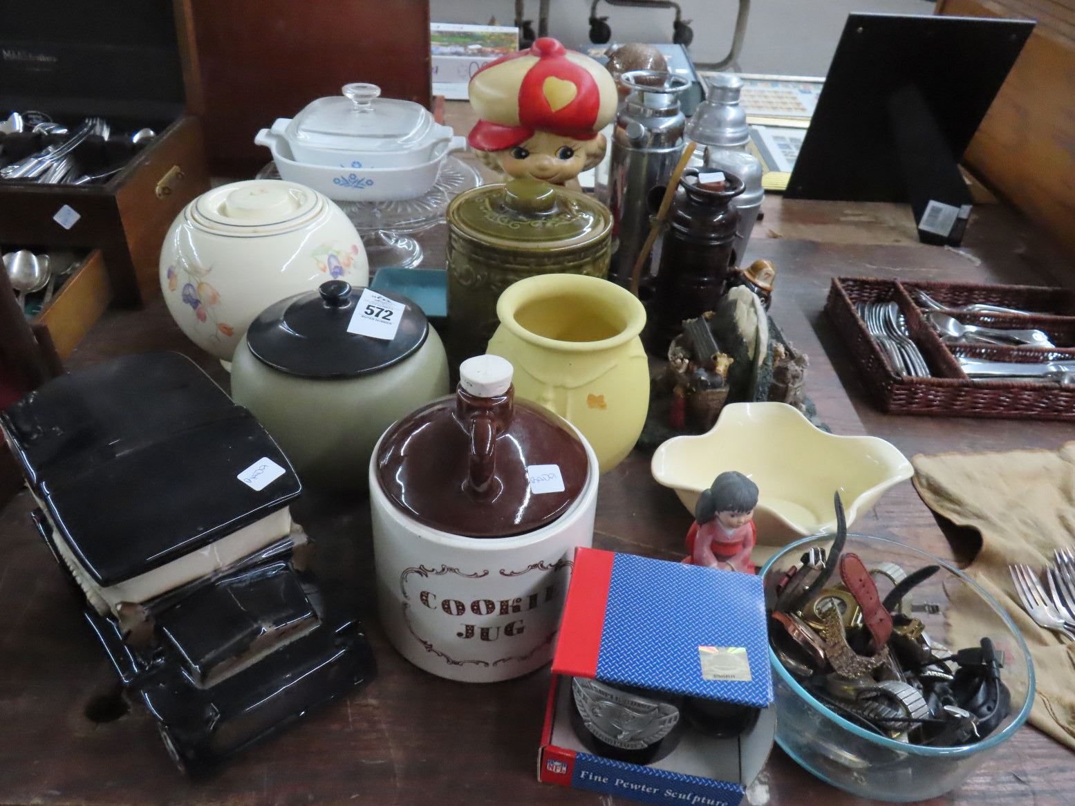 Cookie Jars, Bakeware, Bookends, Asst. Watches