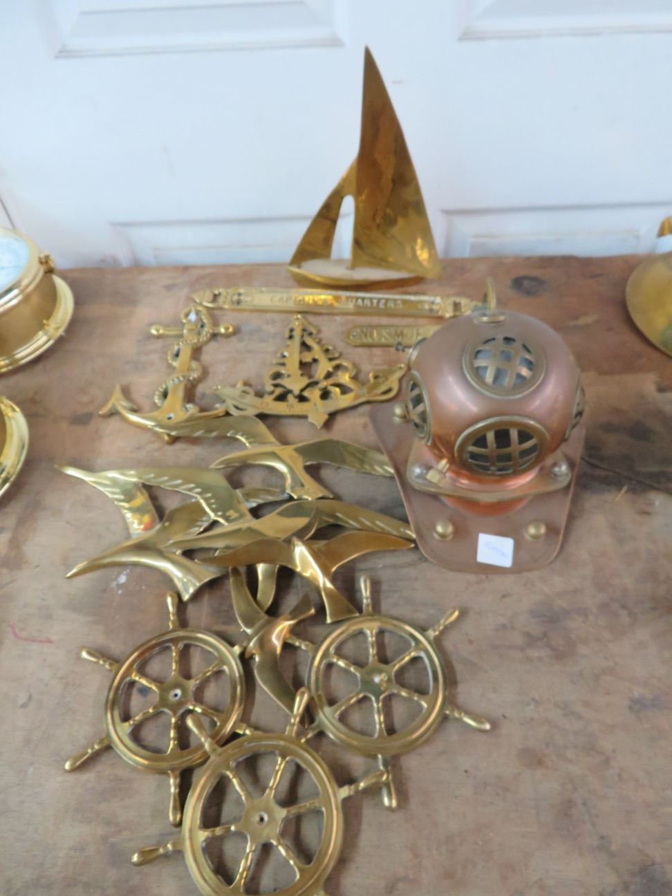 Copper Dive Helmet, Brass Ships Wheels, Anchor, Sailboat, Décor