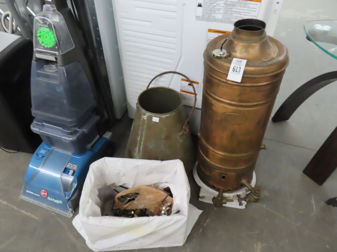 Copper Water Heater w/Spigots, Bucket, Magnetic Hooks