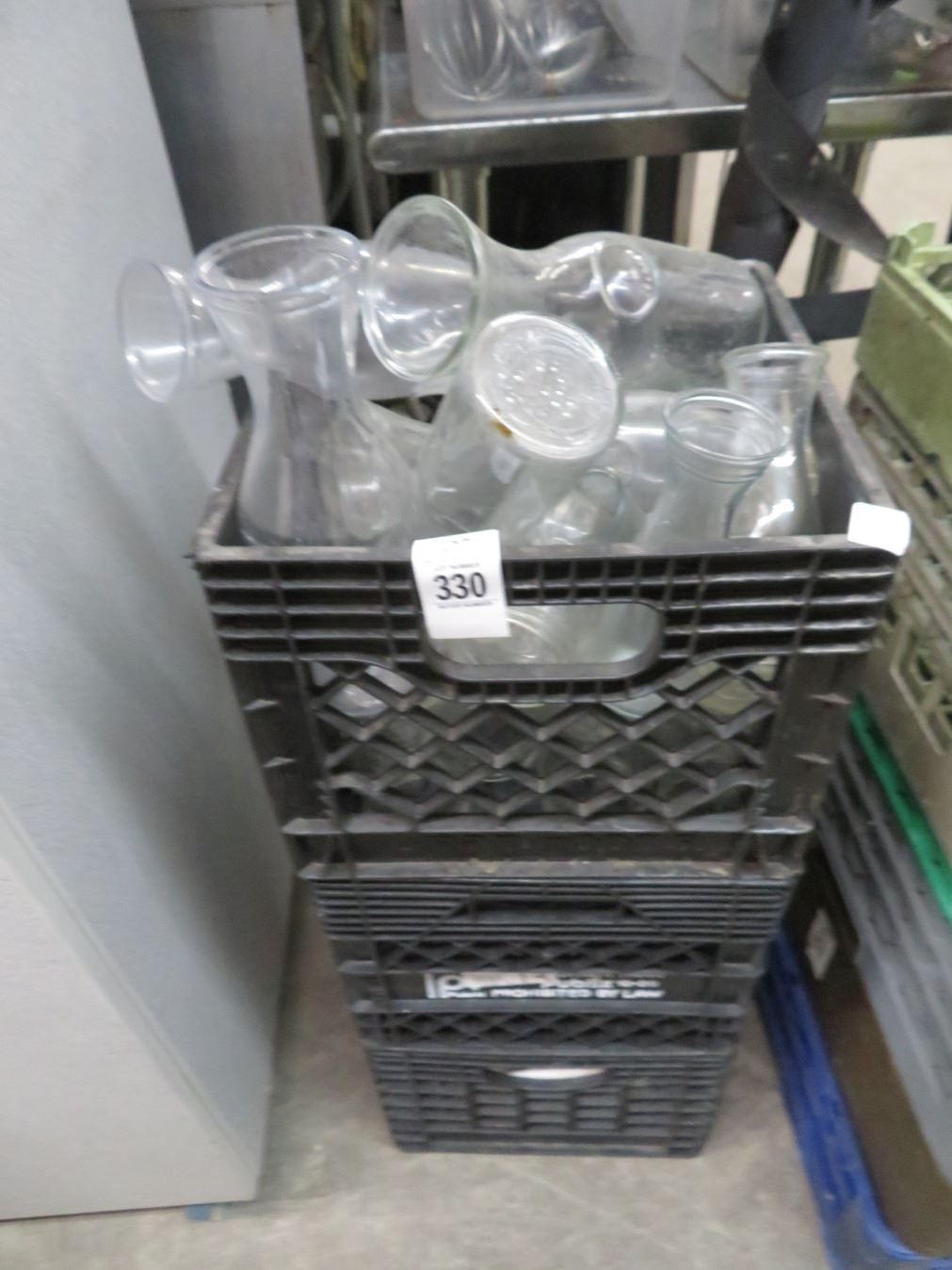 Crates 3 Wine Decanters and Asst. Glassware