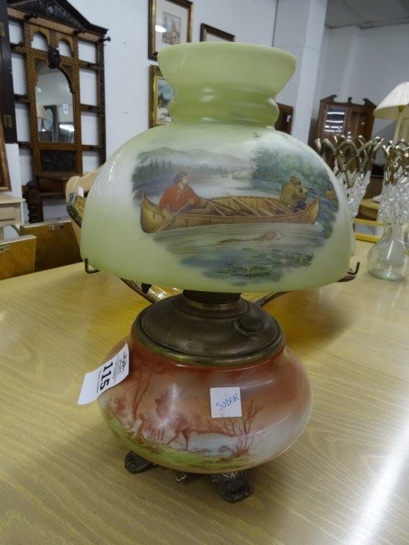 Currier & Ives Painted Hurricane Lamp - No Shipping