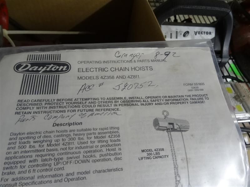 Dayton 500 Lb. Electric Chain Hoist