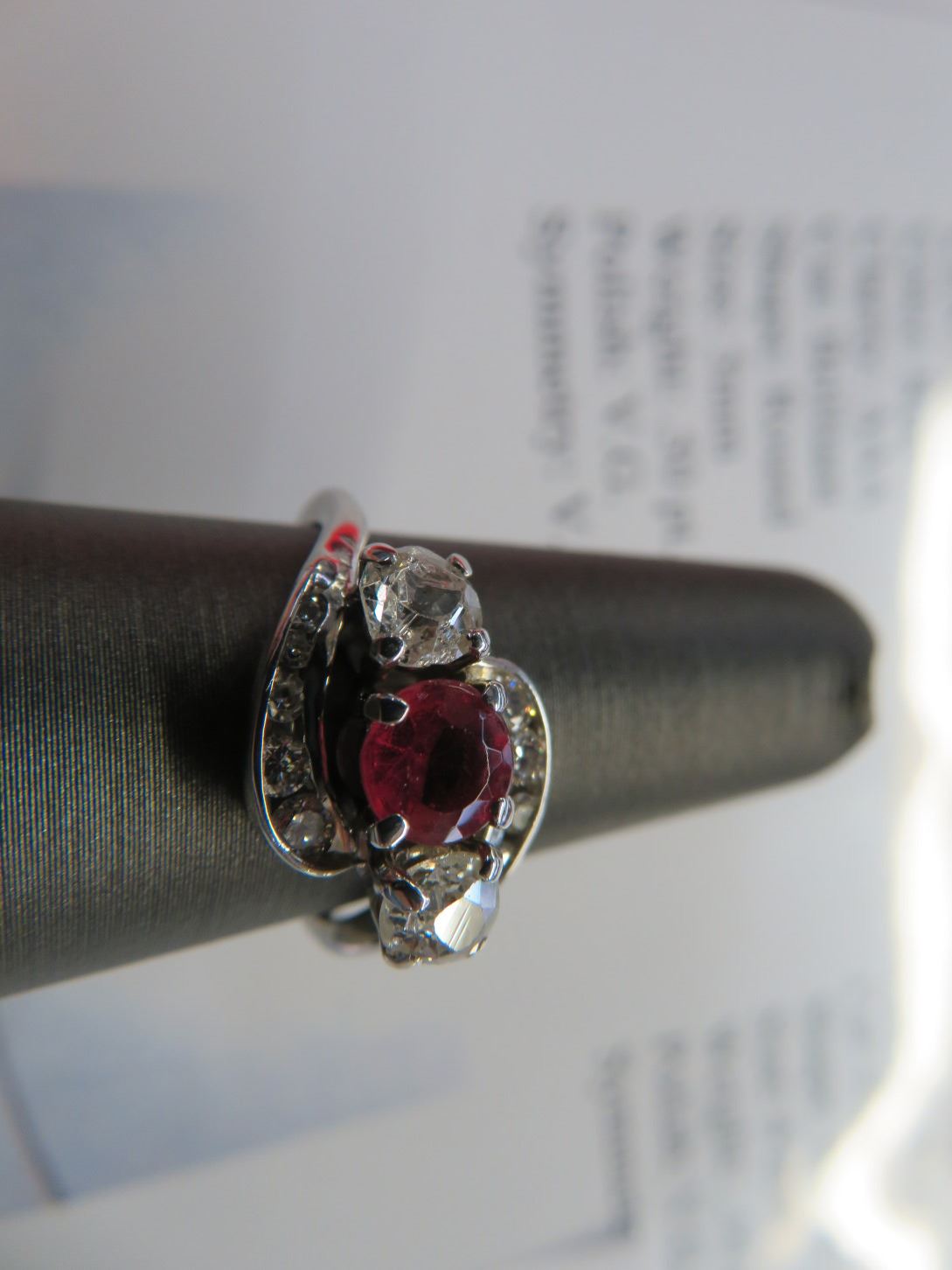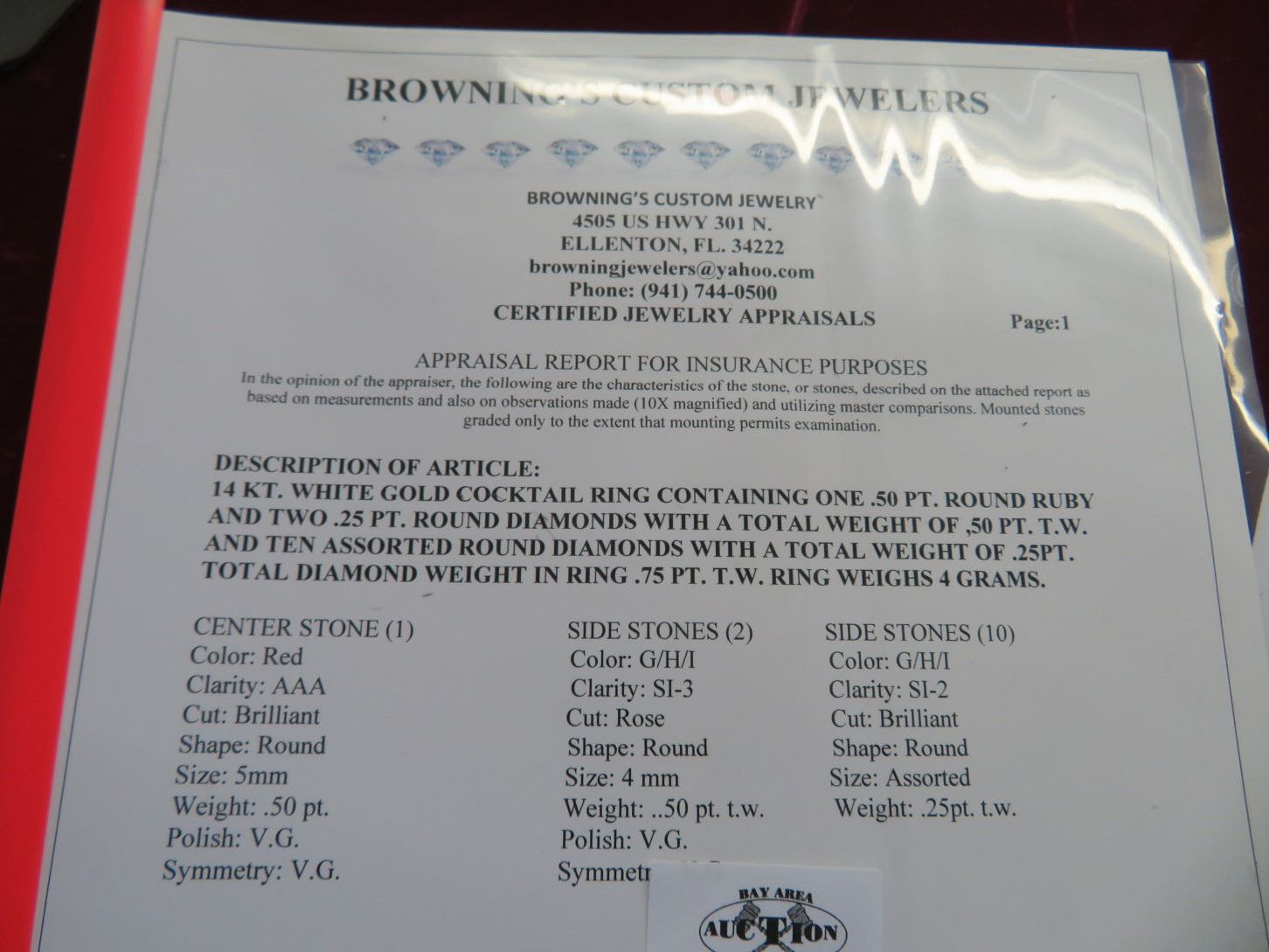 Diamond Cocktail Ring WG Ruby 14K w/Appraisal