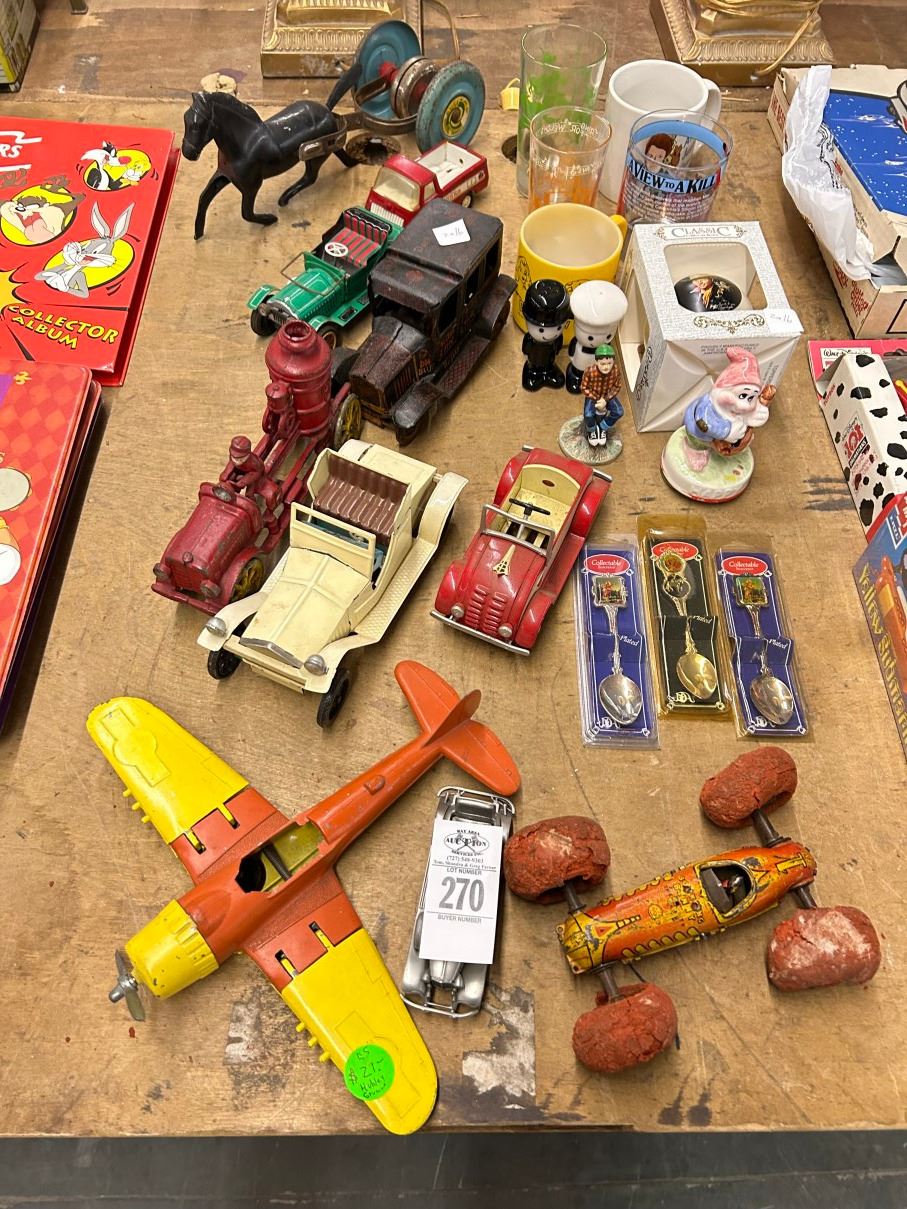 Die Cast Fire Truck, Tin Litho Trucks, Horse, Airplane, Asst. Collectibles