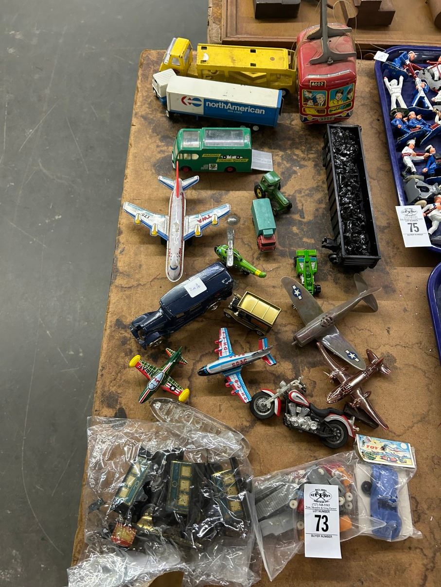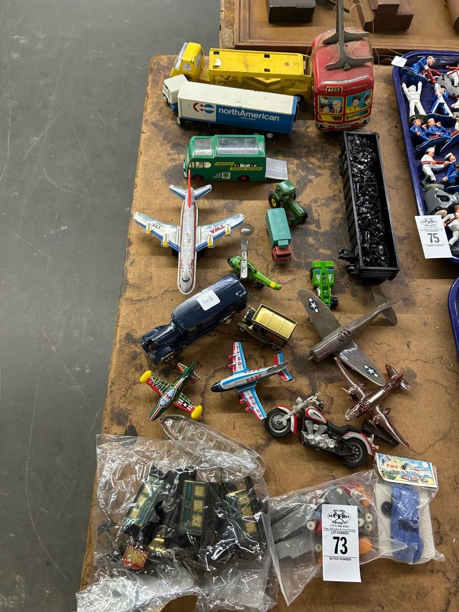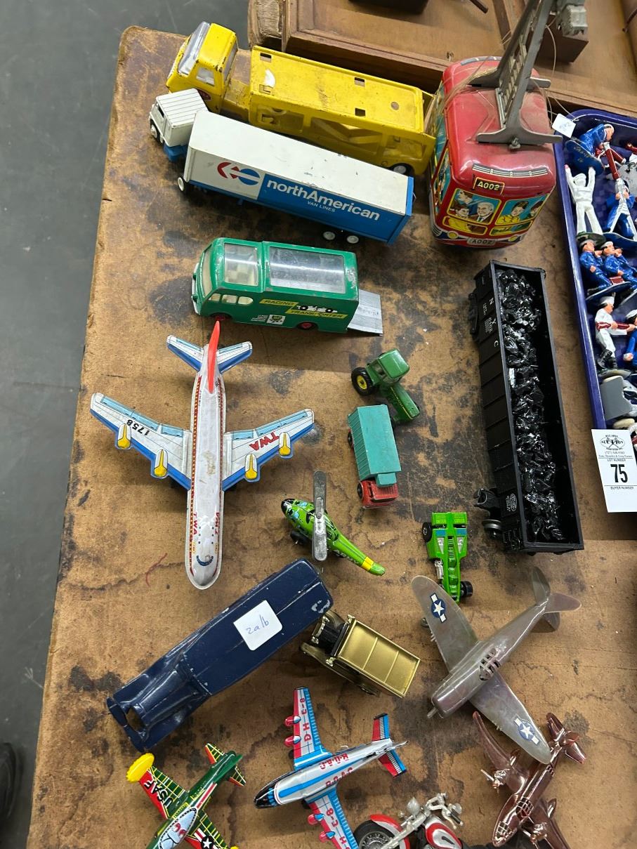 Die Cast/Tin Litho Miniatures Airplanes, Helicopter, Train, Semi Truck, Gondola