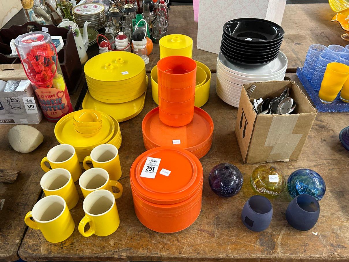 Dinner Bowls, Plastic Dinnerware w/Liquid Candle Bases, Mugs