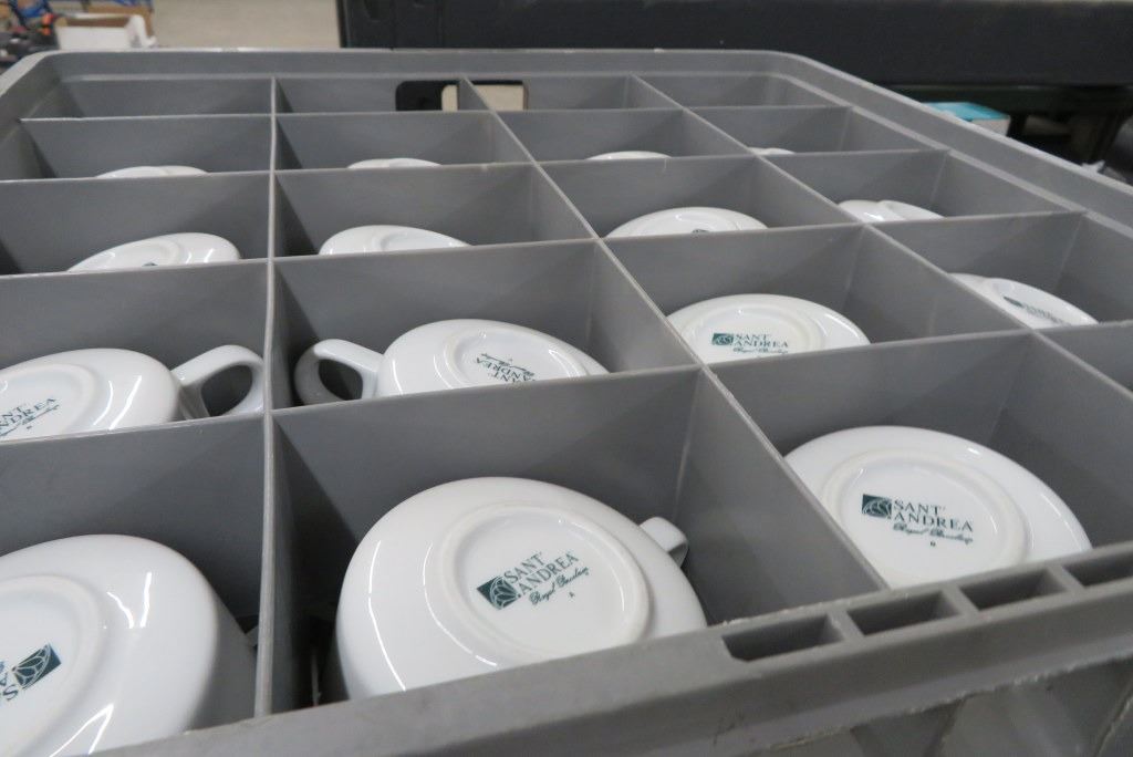 Dishwasher Trays (13) w/Coffee Cups & Dolly