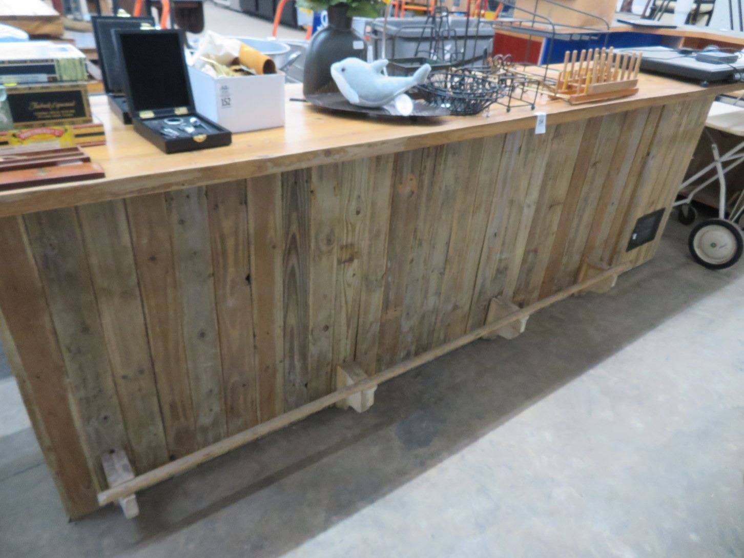 Distressed 11' Wooden Servers Bar w/Kick Rail