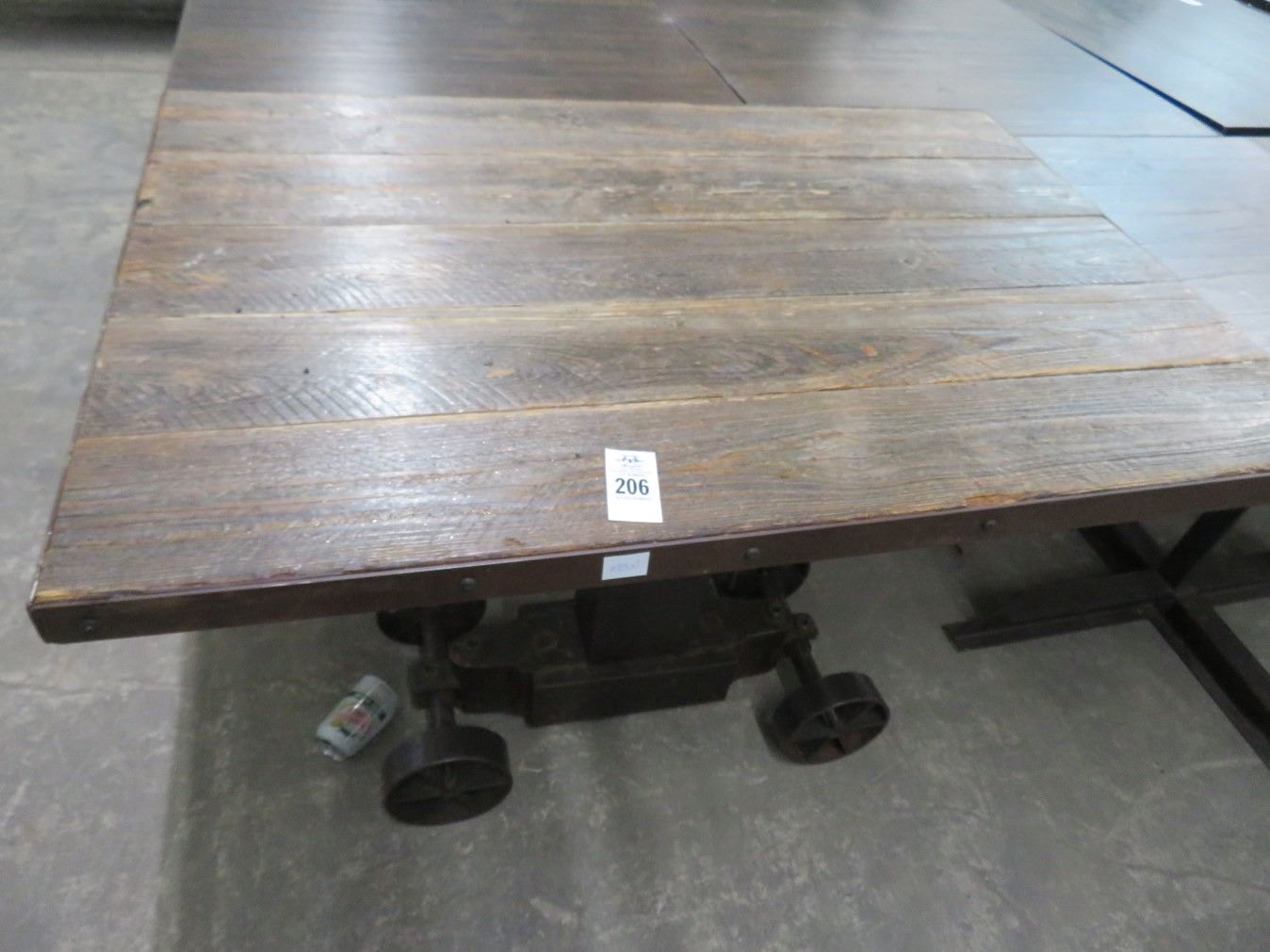 Distressed Plank 4 Top Dining Table w/Steel Roller Base