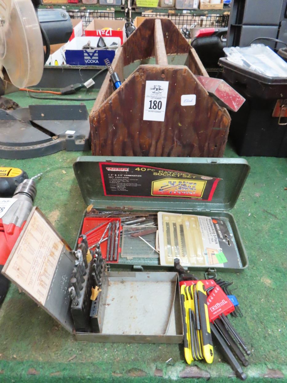 Drill Bits, Allen Wrenches, Wood Bin w/Hand Tools