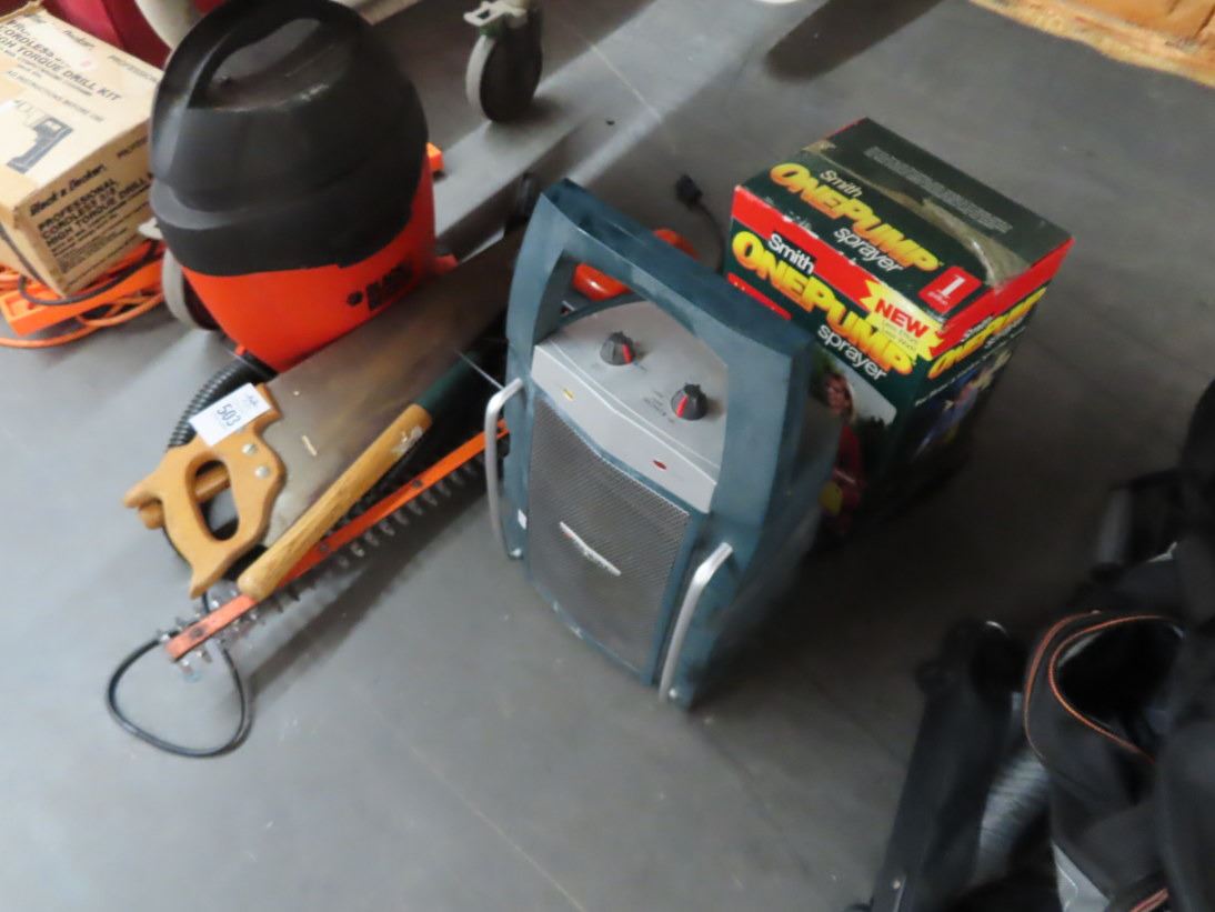 Drill, Shop Vac, Heater, Asst. Tools, Luggage