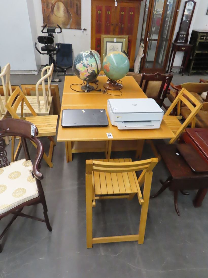 Drop Leaf Cabinet Table w/4 Folding Chairs Set