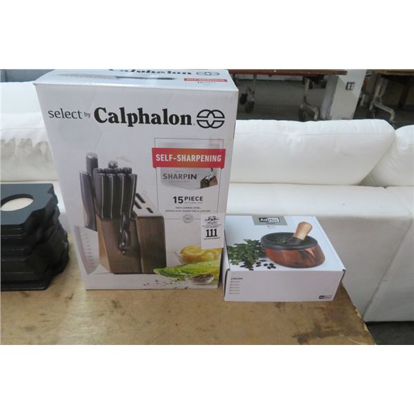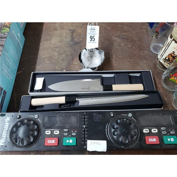Crestware Knives (2), S/S Measuring Cups, Numark Mixing Board