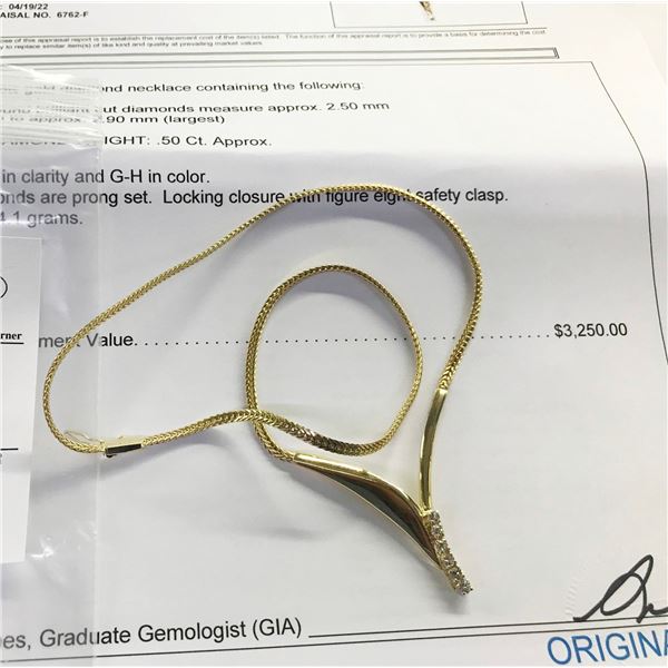14K YG Diamond Necklace 6 Round Diamonds 14.1g (Retail Value $3,250.00)3a - 14K YG Diamond Necklace 6 Round Diamonds 14.1g (Retail Value $3,250.00)