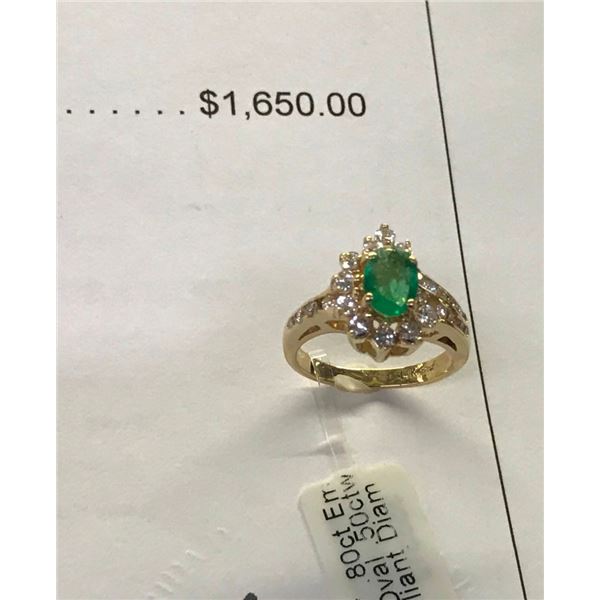 14K YG Emerald & Diamond Ring - Oval Emerald .80CT & 25 Round5b - 14K YG Emerald & Diamond Ring - Oval Emerald .80CT & 25 Round