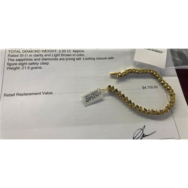 14K YG Diamond & Sapphire Bracelet - 19 Round Sapphires/Diamonds 21.9g (Retail Value $4,750.00)6a - 14K YG Diamond & Sapphire Bracelet - 19 Round Sapphires/Diamonds 21.9g (Retail Value $4,750.00)