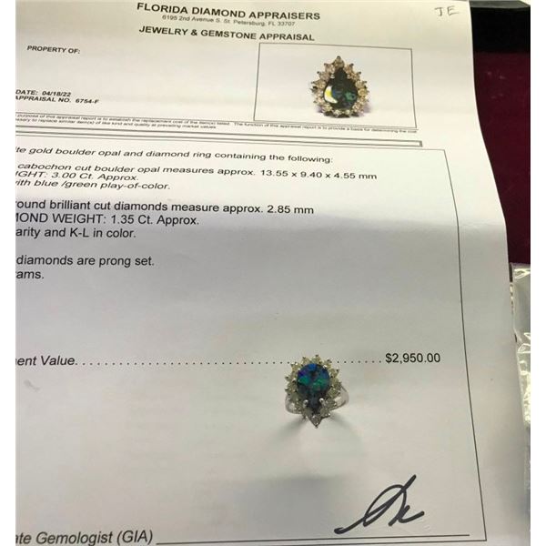 14K WG Boulder Opal & Diamond Ring - Pear Shaped Opal 15 Diamonds7a - 14K WG Boulder Opal & Diamond Ring - Pear Shaped Opal 15 Diamonds