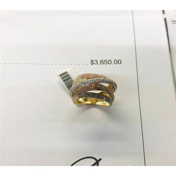 14K Tri-Colored Gold Diamond Ring - 388 Round Single Diamonds 6.9g9a - 14K Tri-Colored Gold Diamond Ring - 388 Round Single Diamonds 6.9g