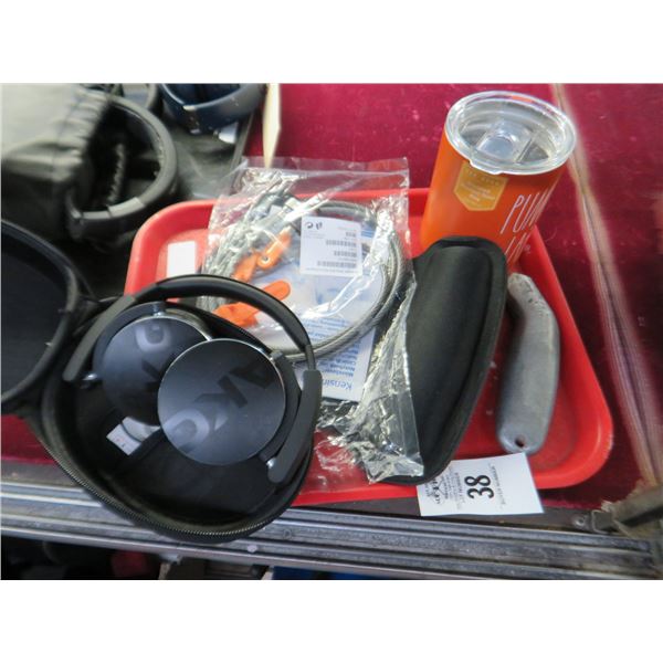 Tray Lot of AKG Headphones, Lock, Mug and Mouse Pad38 - Tray Lot of AKG Headphones, Lock, Mug and Mouse Pad