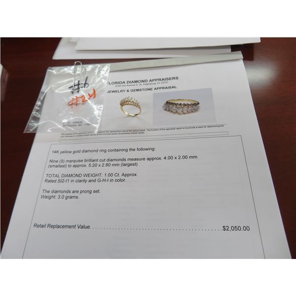 14K YG Gold Diamond Ring w/9 Marquise Diamonds 3.0g - Replacement35 - 14K YG Gold Diamond Ring w/9 Marquise Diamonds 3.0g - Replacement