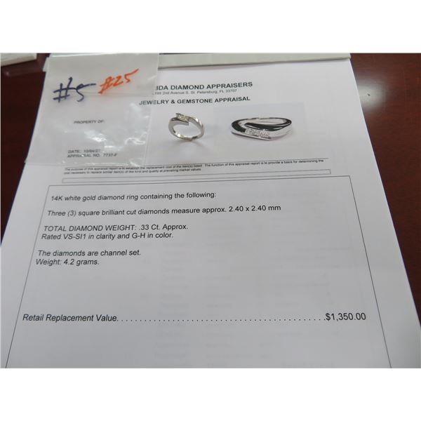14K WG Diamond Ring w/3 Square Diamonds 4.2g - Replacement Value40 - 14K WG Diamond Ring w/3 Square Diamonds 4.2g - Replacement Value