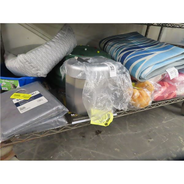 Shelf of Curtains, Paper Shredder, Bath Mats and More313 - Shelf of Curtains, Paper Shredder, Bath Mats and More