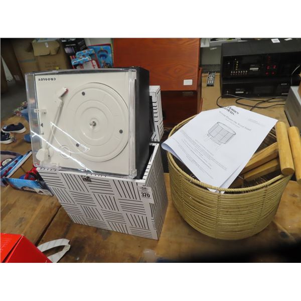 Crosley Record Player In Hard Case and Woven Planter370 - Crosley Record Player In Hard Case and Woven Planter