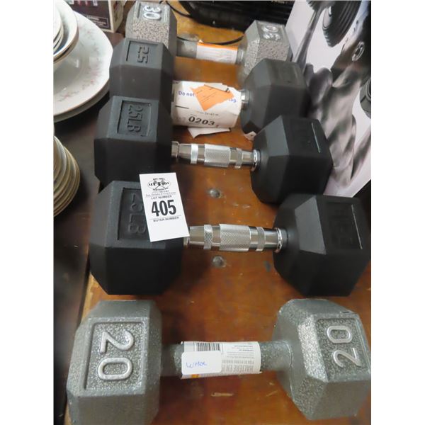 20 Lb, 25 Lb. and 30 Lb. Dumbells (5)405 - 20 Lb, 25 Lb. and 30 Lb. Dumbells (5)